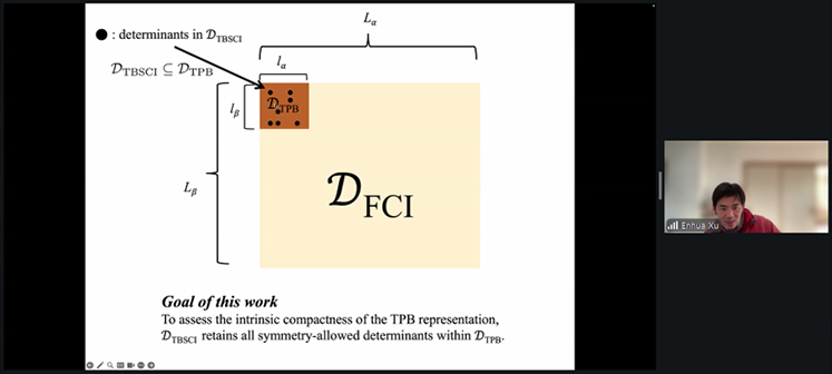 Enhua Xu (理化学研究所 計算科学研究センター 量子系分子科学研究チーム 研究員) 「A scalable diagonalization framework for tensor-product bitstring selected configuration interaction」 Selected configuration interaction (SCI) methods are effective for treating strongly correlated electronic systems, yet their scalability has long been limited by implementations that replicate the configuration interaction (CI) vector across processes, resulting in severe memory bottlenecks.
